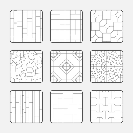 Seamless, editable swatches for Illustrator – tiles, paving, soil, and other architectural materials. New vector sets added regularly.