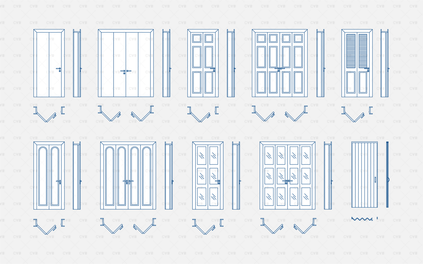 Enhance your architectural CAD drawings with our collection of 18 Wooden Bi-Fold Door Dynamic Blocks featuring single and double door types with wooden frames. Each block is fully parametric, letting you adjust dimensions, opening angles, and visual style to suit your project perfectly.