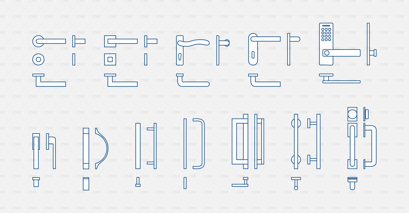 Enhance your CAD drawings with our set of 25 Dynamic CAD Door Handles Blocks. Each block is fully parametric – customize dimensions and views to perfectly fit your project. Perfect for interior design projects and architectural projects where handle design is crucial.